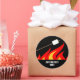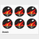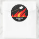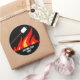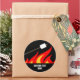 Roasting marshmallow stick on bonfire custom Classic Round Sticker. Modern design with camp fire flames. Great for BBQ party, camping and more. Personalise with your own text.