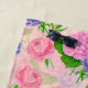 Watercolor made of anemone, peony and hydrangea flowers, and robin birds.