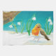 Robin Bird, snow & snowdrops Illustration Tea Towel
