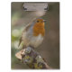 A European Robin (Erithacus rubecula) standing on a broken tree branch covered in lichens.