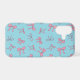 Pink bows with black outlines on a robin egg blue background make up this cute phone case. The design features different types of bows in a trendy pattern.
