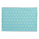 Robin egg blue and white abstract lily pattern with yellow piping detail