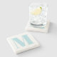 Robin Egg Blue and White Polka Dot Monogram Stone Coaster