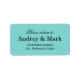 Refined black calligraphy reading "Please return to:" sits above the couple's names in elegant serif lettering on this charming robin egg blue wedding return address label. The aqua background brings a fresh, sophisticated touch to your wedding mailings. All text is fully customisable.