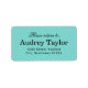 Sophisticated black calligraphy reading "Please return to:" pairs with refined serif lettering on this elegant robin egg blue return address label. The fresh aqua background adds a polished, feminine touch to everyday mailings, thank you notes, and personal correspondence. All text is fully customisable.