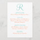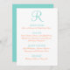 Simple, Elegant Robin Egg Blue and Orange Wedding Menu with your monogram initial. Customise with your wedding menu items. Use "customise it" for more editing options and spacing. Please note: Menu will print as seen on the screen. No editing once it is added to cart. For different colours or help please contact luxuryweddinginvitations@gmail.com