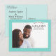 Make a fresh and polished first impression with this save the date, where a vibrant robin egg blue border frames a clean inset couple photo alongside a classic ribbon banner and crisp wedding details. The coordinating blue mailable reverse carries the color story beautifully from front to back. A cheerful and distinctive design that feels equally at home at a spring garden wedding or a modern destination celebration. Fully customizable with your names, date, and photo.