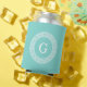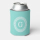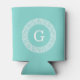 Robin Egg Wht Greek Key Rnd Frame Initial Monogram Can Cooler