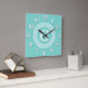 Robin Egg Wht Greek Key Rnd Frame Initial Monogram Square Wall Clock