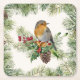 This design features Red Robin with an arrangement of pine branchlet, pine cones, holly, mistletoe, red berries and sleigh bells. The background colour can be changed