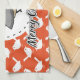 Robin on Orange White Bird Pattern - Merry Xmas Tea Towel
