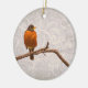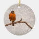 Robin Photo with Damask Swirl Design Ceramic Tree Decoration