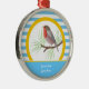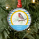 Robin Redbreast customisable ornaments ceramic or metallic featuring a cute bird robin redbreast in a yellow circle and blue and white striped pattern. Great gift for bird, animal lovers not just for Christmas.