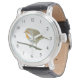 Watch with photo of European robin (Erithacus rubecula) perching on a thin branch
