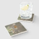 The coasters are gorgeous, a quality feel and heavy weight. They look like a precious archeological find. A rustic stone juxtaposed with a modern floral black and white print. I like the way the print goes slightly imperfect on the cut stone edges giving them a kind-of natural beauty.
