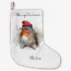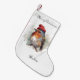Hang a personalised touch of winter charm by the chimney with our "Robin Winter Delight" Christmas stocking. This festive stocking features the charming watercolor illustration of a robin, bundled up for winter in a festive red and white striped beanie topped with a fluffy pompom. This beloved little bird brings a whimsical and joyful spirit to your holiday decor, ready to be filled with treats and treasures.