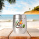 A beautiful, colourful bird image on the front and back of this stainless steel wine tumbler.
