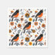 A seamless pattern of the popular robin bird surrounded by flowers in colours of orange, blue, and yellow.