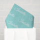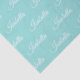 Elegant all purpose tissue paper done in Robin's egg blue with white name done in a pattern, across the paper. Personalise the name to read what you want. Matching Robin's Egg Blue gift bag with silver crown is available.