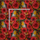 Hand-drawn seamless pattern with robin birds, moths, dahlia flowers, calendula and various berries and leaves
