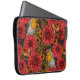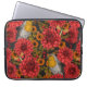 Robins in the autumn garden, red dahlias on black laptop sleeve
