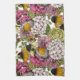 Hand-drawn pattern with various flowers- hydrangea, anemone, peony, dahlia and robin birds