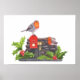 This gouache illustration features a cute robin visiting a decorative mailbox.