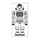 A retro toy robot motif in a linear black and white style