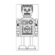A retro toy robot motif in a linear black and white style
