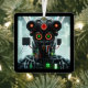 Robot 5 metal ornaments are for people interested in robots, science, Sci-Fi, and cyberpunk art. Robot 5 is Steamy Raimon digital art.