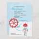 A darling customisable baby shower invitation featuring a blue and red robot design. Matching thank you card and favour sticker.