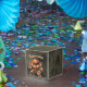 A big robot standing strong is thanking everyone for attending a special boys birthday.