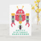 Robot with a number on its chest! Add the birthday child's name and age to personalise. Blank interior.