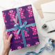 Happy Birthday Kids Pink and Purple Robot Pattern Cute Wrapping Paper. Silly hot pink magenta robot on dark purple background. Personalise with name and child's age for their birthday party. Fun for robot themed parties and robot lovers. Background can be changed to white or black. Cute girly robots in fun feminine colours.