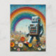 An adorable robot in a flower meadow with a rainbow in an encaustic looking mixed media style
