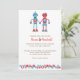 A cute pair of red & blue robots (in love!) are the main stars of this funky wedding invitation set.