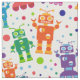 Robot Party Colourful Kids Fun Pattern Fabric. Adorable colourful robots with confetti polka dots party fabric. Multicolored robots with white background and confetti polkadots. www.SamAnnDesigns.com
