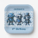 Robot theme 4th birthday blue party plates.