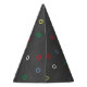 Robot themed birthday party hats, Robots illustration in bright yellow, red, green and blue colour.