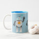 ROBOT TOY IN BLUE BACKGROUND Two-Tone COFFEE MUG