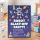 A cute design with robots in space. Customise the details for a chic Birthday Celebration!