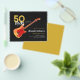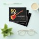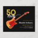 50 Rocks 50th birthday party invitations with a cool electric guitar with Fire flame pattern and red pick guard guitar art and musical notes illustration with personalised black and gold modern calligraphy typography. This easy to use template creates the perfect personalised invitation to celebrate fifty in rock n roll style and is ideal for a guitarist, musician and music lovers. Any guitar player will tell you that you can never have too many guitars. This cool modern musical instrument design celebrates the music energy of this wonderful musical instrument and is the perfect way to rock a fiftieth birthday celebration. Original artwork by artist Catherine Sweetman