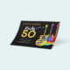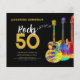 Personalised Rocks 50th birthday party budget invitations with three cool watercolor guitar designs. An electric guitar with colourful pattern and red pick guard, a multicolored semi acoustic guitar and a psychedelic classic acoustic guitar art illustration with personalised black and gold modern cool typography. This easy to use template creates the perfect invitation to celebrate fifty in rock n roll style and is ideal for a guitarist, musician and music lovers. Any guitar player will tell you that you can never have too many guitars. This cool modern musical instrument design celebrates the music energy of this wonderful musical instrument and is the perfect way to rock a fiftieth birthday celebration. Original artwork by artist Catherine Sweetman