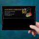 Rock and roll 50th birthday party self addressed envelope. Personalised rocks 50 for the rockstar husband, boyfriend, brother, dad or partner with these funky psychedelic guitars and cool gold typography on on black background. Unique colourful guitar illustrations with electric guitar with Fire flame and red pick guard, a multicoloured semi acoustic guitar and a psychedelic classic acoustic guitar. Easy to use template with personalised name and RSVP return address creates the perfect party stationary to celebrate fifty in rock n roll style. Ideal trendy party stationary for a guitarist, musician, live music band and music lovers. Any guitar player will tell you that you can never have too many guitars. This cool modern musical instrument design celebrates the music energy of this wonderful musical instrument and is the perfect way to rock a fiftieth birthday celebration. Original artwork by artist Catherine Sweetman