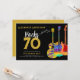 Personalised Rocks 70 gold modern typography 70th birthday party invitations with musical notes and three cool colourful watercolor guitar designs. This easy to use template creates the perfect invitation to celebrate seventy in rock n roll style and is ideal for a guitarist, musician and music lovers. Any guitar player will tell you that you can never have too many guitars so these electric guitar, acoustic guitar and semi acoustic guitar illustrations are a good start. Modern musical instrument design celebrates the music energy of this wonderful musical instrument and is the perfect way to rock a seventieth birthday celebration. Original artwork by artist Catherine Sweetman