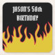 Throw a rocking birthday bash with personalised party supplies like these paper coasters featuring illustrations of flames in yellow and red set against a black background. Your custom message is spelled out in white heavy metal style lettering.