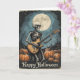Add a rock-n-roll twist to your Halloween greetings with this unique card featuring a skeleton guitarist under a full moon. Perfect for music lovers and Halloween enthusiasts, this design blends spooky vibes with a fun, edgy style. The moonlit backdrop and autumnal hues give it a moody yet playful feel. Whether you're a fan of rock, gothic art, or simply enjoy unconventional Halloween designs, this card is sure to stand out and be remembered.
