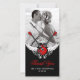 Unconventional wedding Thank You photo card on red, white and black featuring a rock and roll theme with illustration of electric guitars, wings and elegant baroque vintage ornaments.