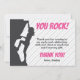 Say thank you with these bold rock climbing cards. These are perfect for your daughter's rock climbing party featuring a girl climbing a rock wall with pink and dark grey text.