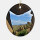 Photograph of rocks forming an interesting window view of the landscape and blue sky at Big Bend National Park in Southwestern Texas. The back of ornament has customizable color and text.